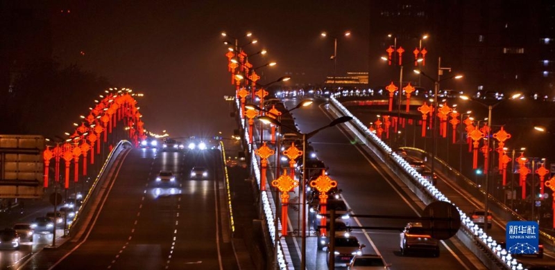 9月26日晚在北京街頭拍攝的“中國(guó)結(jié)”景觀燈。