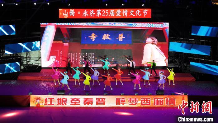 中新網(wǎng)運(yùn)城9月27日電 (楊佩佩 陸祁國)“紅娘牽秦晉醉夢西廂情”山西·永濟(jì)第25屆愛情文化節(jié)開幕式26日晚在山西永濟(jì)舜帝山森林公園舉行。