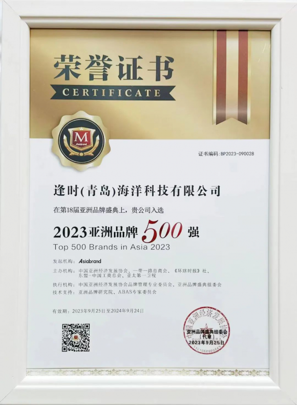 9月25日,由專(zhuān)業(yè)品牌評(píng)估機(jī)構(gòu)Asiabrand發(fā)起,聯(lián)合中國(guó)亞洲經(jīng)濟(jì)發(fā)展協(xié)會(huì)、一帶一路總商會(huì)等單位共同主辦的第18屆亞洲品牌盛典在香港舉辦。會(huì)上發(fā)布了“2023亞洲品牌 500 強(qiáng)排行榜”。此次共有15個(gè)國(guó)家和地區(qū)的品牌入選榜單,其中,中國(guó)有251個(gè)品牌入選,逢時(shí)科技成為南極磷蝦油行業(yè)唯一入選的品牌。逢時(shí)科技創(chuàng)始人、董事長(zhǎng)高以成被評(píng)為“亞洲品牌十大創(chuàng)新人物”。