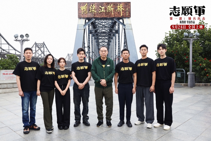 中新網(wǎng)9月28日電 9月27日,電影《志愿軍:雄兵出擊》導演陳凱歌、總制片人陳紅攜演員辛柏青、黃曉明、王驍、朱亞文、陳飛宇、張子楓來到鴨綠江畔的丹東市,并以此為起點開啟全國路演。