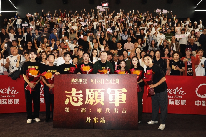 當天,丹東市的觀眾也提前觀看了于9月28日上映的電影《志愿軍:雄兵出擊》,電影主創(chuàng)一行出席了映后的主創(chuàng)見面會。導演陳凱歌在現(xiàn)場分享了這次到丹東參觀路演的感受,“踏上丹東這片熱土,站在鴨綠江斷橋上,讓我深深感受到我拍攝這部影片的意義,和平是多么珍貴,我們最可愛的人是多么偉大”。