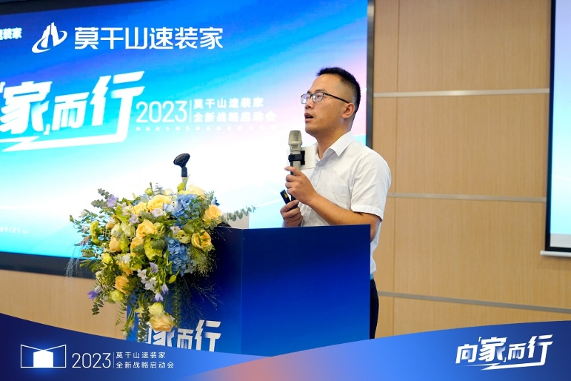 隨后,浙江云峰莫干山營銷有限公司副總經(jīng)理葉斌先生在會上作莫干山速裝家全新戰(zhàn)略升級解讀。葉斌先生表示,標(biāo)準(zhǔn)化是速裝發(fā)展的硬底座,有此綱領(lǐng),速裝才能實現(xiàn)統(tǒng)一管理。未來,莫干山板材將從速裝家的六大能力體系建設(shè)入手,作全新的戰(zhàn)略布局,把控未來的主動權(quán)。
