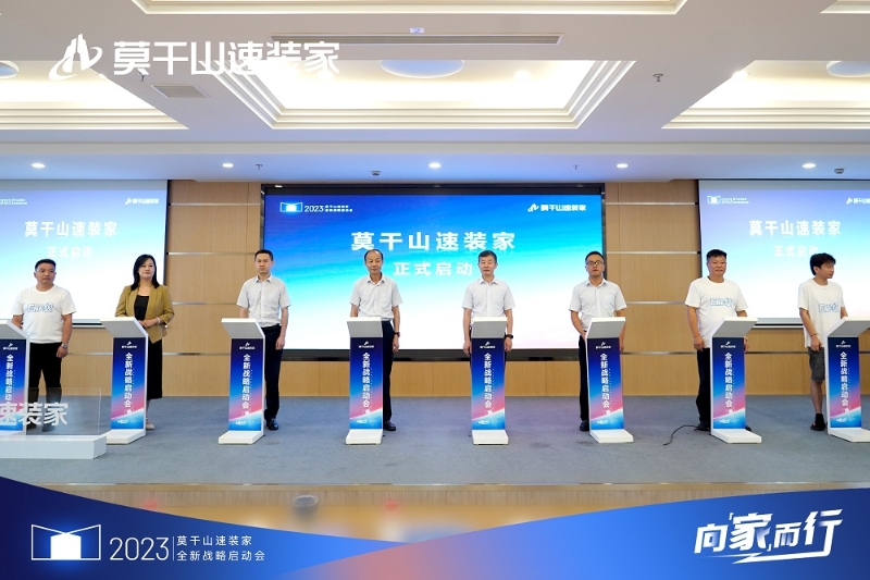 接下來,在莫干山速裝家全新戰(zhàn)略啟動儀式上,升華云峰董事長顧水祥先生、莫干山板材總經(jīng)理姜全建先生、升華云峰品牌總監(jiān)馬文慧先生、莫干山板材副總經(jīng)理葉斌先生、品牌總監(jiān)劉佳欣女士、莫干山板材經(jīng)銷商代表蕪湖王基宏先生、南京宰勝利先生,莫干山速裝家加工中心代表長沙楊宇希先生,一同見證了莫干山速裝家全新戰(zhàn)略升級。