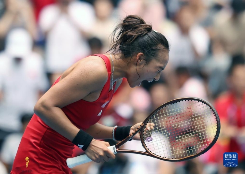 9月29日,鄭欽文在比賽后慶祝勝利。