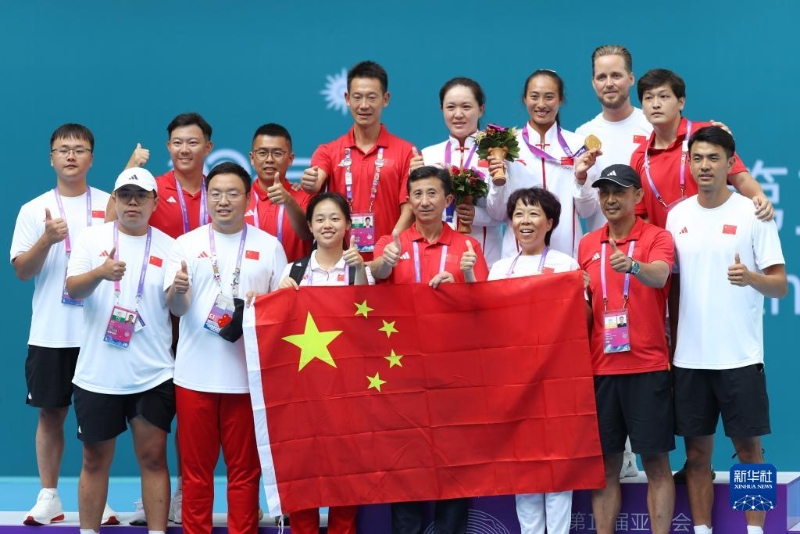 9月29日,中國網(wǎng)球隊成員在頒獎儀式后合影。