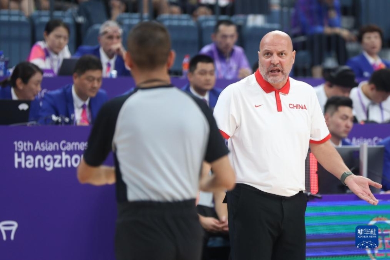 9月28日,中國(guó)隊(duì)主教練喬爾杰維奇(右)在比賽中與裁判交流。