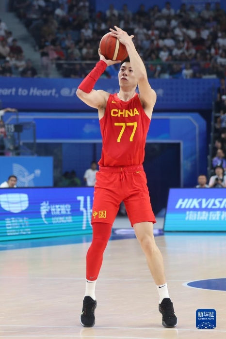 9月28日,中國(guó)隊(duì)球員張鎮(zhèn)麟在比賽中投籃。