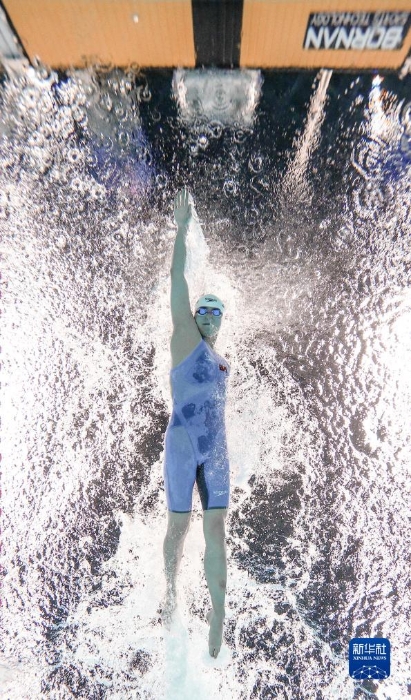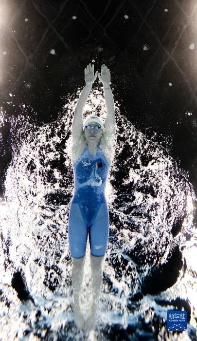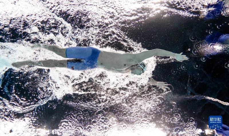 當日,杭州亞運會游泳比賽在浙江杭州奧體中心游泳館繼續(xù)進行,泳池中的潛水遙控相機從水中記錄下選手比賽的身影。