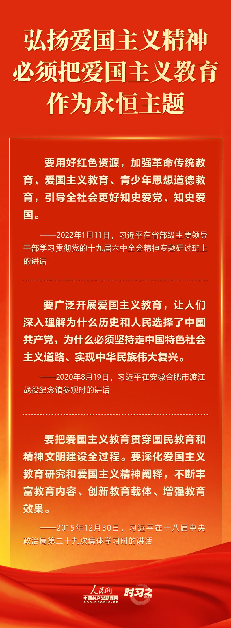 悠悠愛(ài)國(guó)情,拳拳赤子心?!皭?ài)國(guó)主義是中華民族精神的核心?!绷?xí)近平總書(shū)記多次在不同場(chǎng)合強(qiáng)調(diào)“愛(ài)國(guó)”的重要性、要求弘揚(yáng)愛(ài)國(guó)主義精神,引領(lǐng)中華兒女培養(yǎng)愛(ài)國(guó)之情、砥礪強(qiáng)國(guó)之志、實(shí)踐報(bào)國(guó)之行。