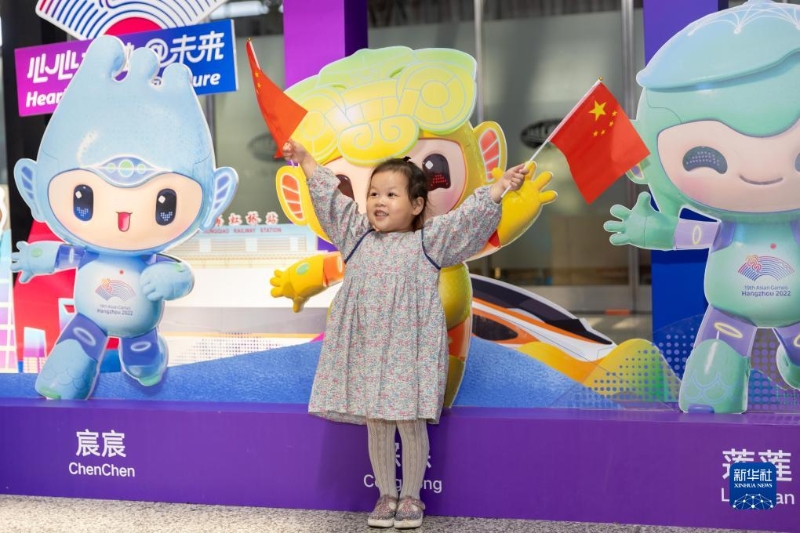 10月1日,小朋友在上海虹橋火車(chē)站候車(chē)區(qū)揮舞國(guó)旗。