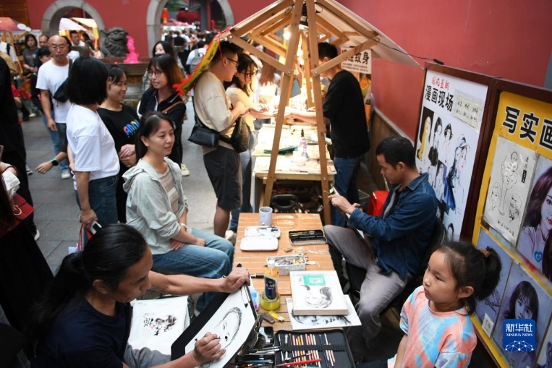 10月1日,游客在長(zhǎng)沙市坡子街游玩。