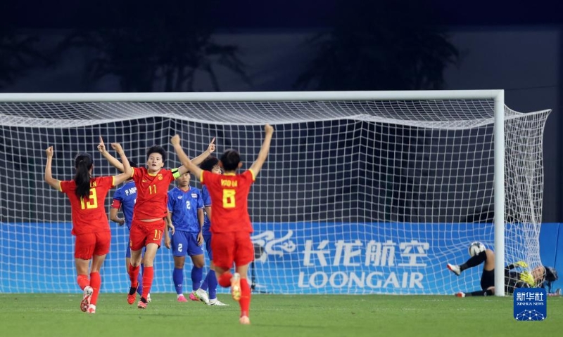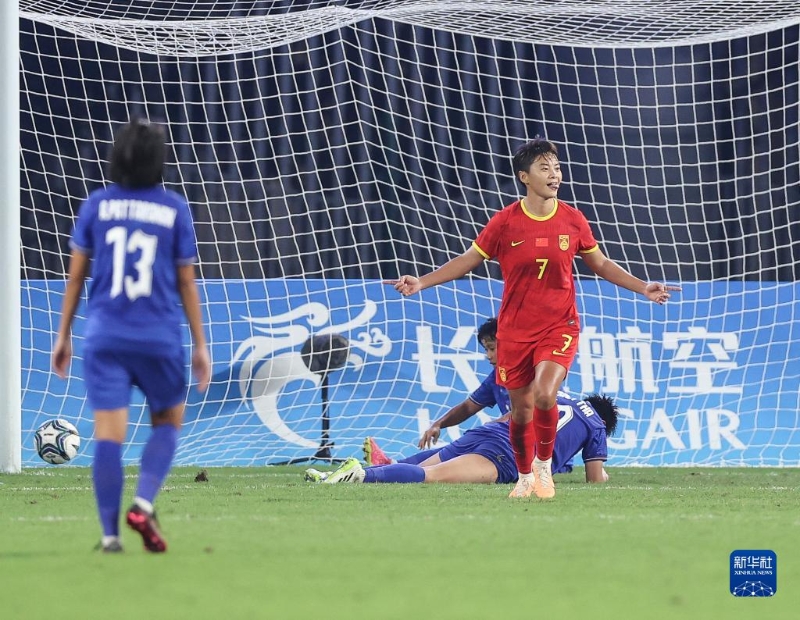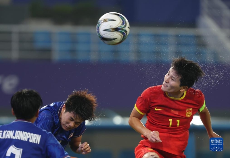 當日,在杭州亞運會足球項目女子組四分之一決賽中,中國隊對陣泰國隊。