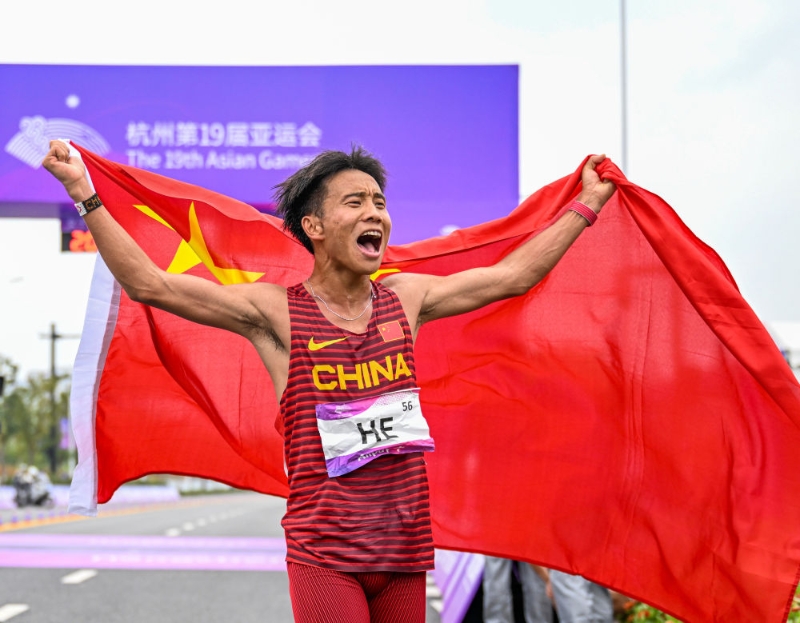田徑最后一個比賽日,中國選手何杰繼今年打破塵封15年的男子馬拉松全國紀(jì)錄后,再度創(chuàng)造歷史。他以2小時13分02秒奪得中國隊(duì)亞運(yùn)參賽史上首枚男子馬拉松金牌。巴林則實(shí)現(xiàn)了在女子馬拉松項(xiàng)目上的亞運(yùn)“三連冠”。