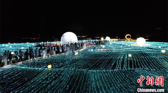 中秋、國慶“雙節(jié)”期間,網紅打卡地福安穆陽·桃花島美麗夜景,吸引眾多游客紛至沓來?!「0彩形捏w旅局 供圖