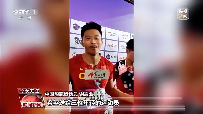 中國短跑運(yùn)動員 謝震業(yè):是我特意找組委會說,萬一我們拿金牌的話,希望送給三位年輕的運(yùn)動員,在年輕的戰(zhàn)場上,所有人為他們驕傲鼓掌。