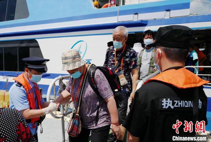9月22日,福州出入境邊防檢查站民警在靠岸客輪梯口服務(wù)臺胞下船上岸?!钴?攝