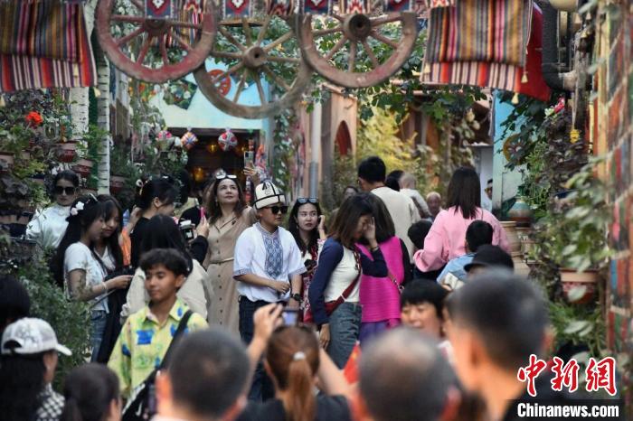 雙節(jié)期間,喀什作為新疆重要旅游目的地之一,迎來旅游高峰。10月1日,中新網(wǎng)記者來到喀什古城景區(qū),看到熙熙攘攘的游客們漫步在縱橫交錯(cuò)的巷道里,時(shí)不時(shí)駐足停留。10時(shí),在古城東門,觀看開城儀式的游客紛紛拿出手機(jī)打卡??κ补懦蔷皡^(qū)管委會(huì)對(duì)外宣傳科科長阿地力江·阿不都卡德爾說,今年喀什旅游非?;馃?,很多游客慕名而來,品嘗當(dāng)?shù)孛朗?,感受民族風(fēng)情,帶動(dòng)了喀什古城景區(qū)的整體經(jīng)濟(jì)發(fā)展。