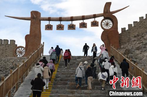 圖為10月2日拍攝的位于帕米爾高原上的塔什庫爾干縣石頭城遺址參觀的游客。 中新網(wǎng)記者 孫亭文 攝