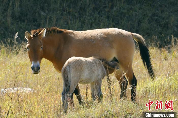 2023年10月2日,普氏野馬在內(nèi)蒙古野化放歸兩年來,已陸續(xù)自然繁殖成活4匹馬駒。張赫凡攝