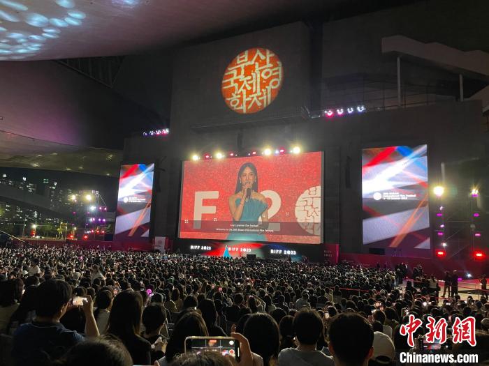 4日晚間,第28屆釜山國(guó)際電影節(jié)(BIFF)在韓國(guó)釜山開幕。圖為電影節(jié)開幕式。(許鵬飛 攝)