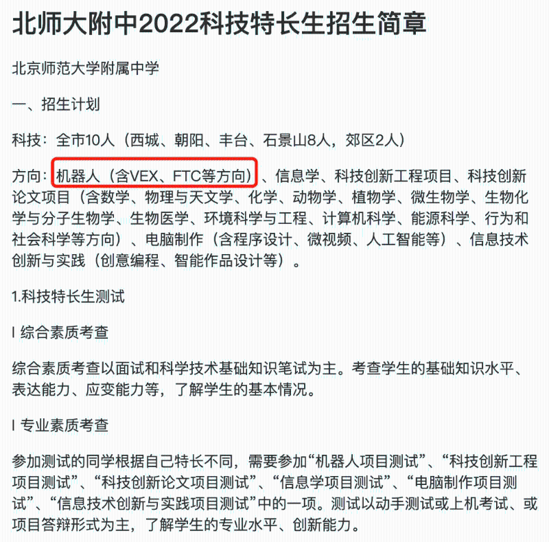 ▲2022北師大大附中高中入學(xué)科技特長生招生簡章