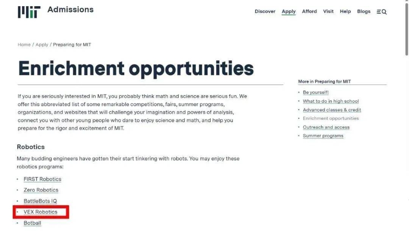 MIT就把VEX Robotics列為“學(xué)生在申請MIT前推薦參加的機器人活動”,對其的重視程度不言而喻。