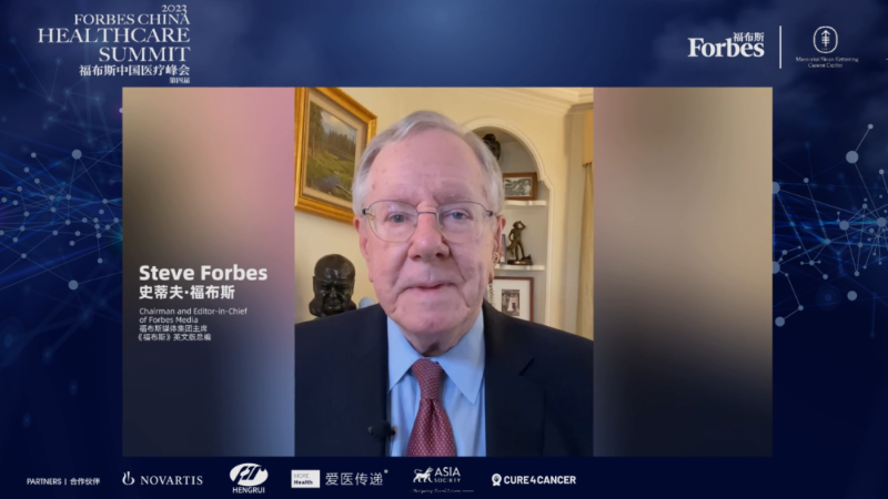 福布斯媒體集團(tuán)主席、《福布斯》英文版總編史蒂夫·福布斯(Steve Forbes)致開場(chǎng)辭。他肯定了人類在治療癌癥方面取得的進(jìn)展,并贊揚(yáng)了MSK斯隆在生命科學(xué)領(lǐng)域做出的卓越貢獻(xiàn)。他認(rèn)為,本次峰會(huì)可以促進(jìn)國(guó)際交流與合作,以幫助人類加速戰(zhàn)勝癌癥。