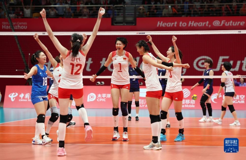 當日,在杭州亞運會女子排球決賽中,中國隊以3比0戰(zhàn)勝日本隊,獲得冠軍。