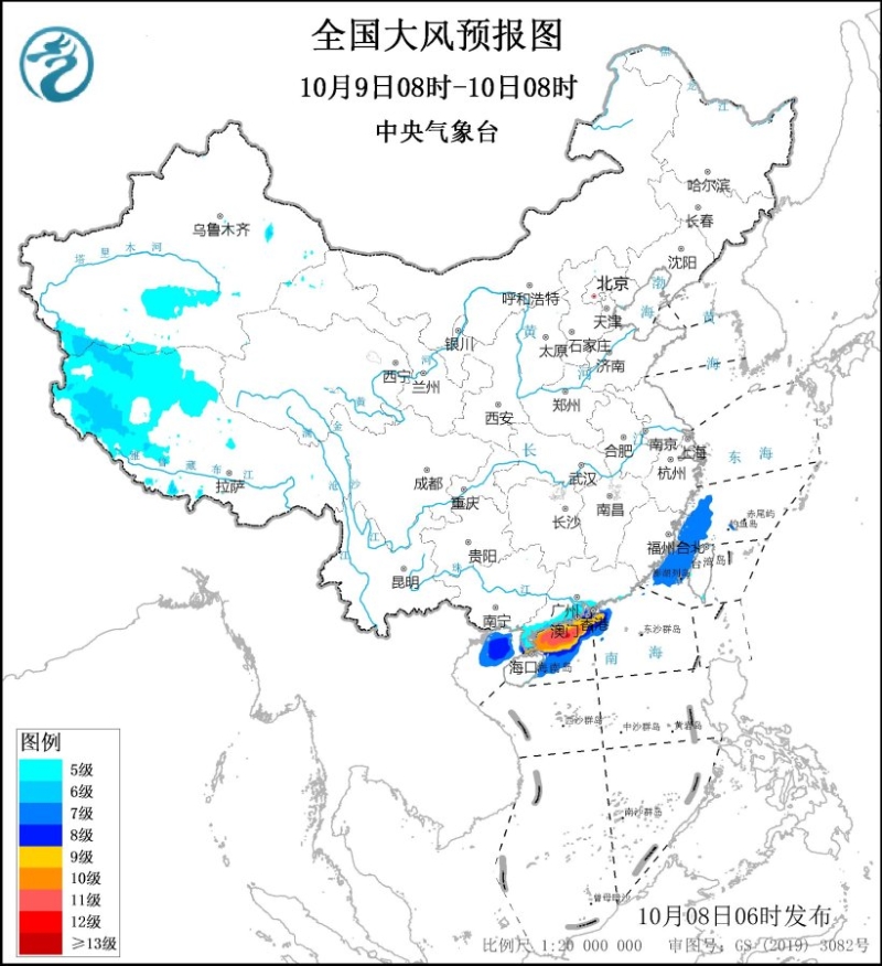 10月9日08時(shí)至10日08時(shí),東海西南部海域、臺(tái)灣海峽、南海北部海域、瓊州海峽、北部灣將有7~8級(jí)、陣風(fēng)9~10級(jí)的大風(fēng),其中東海東北部和南海北部的部分海域風(fēng)力可達(dá)9級(jí)、陣風(fēng)10~11級(jí),臺(tái)風(fēng)“小犬”中心經(jīng)過(guò)的附近海域風(fēng)力可達(dá)10~12級(jí)、陣風(fēng)13~14級(jí);福建沿海、廣東中西部沿海、雷州半島及廣西南部沿海將有6~8級(jí)、陣風(fēng)9級(jí)的大風(fēng)。
