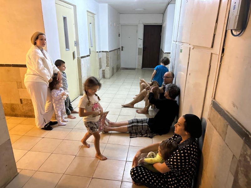 10月7日,防空警報響起后民眾在耶路撒冷一處建筑內(nèi)避難。新華社記者王卓倫攝