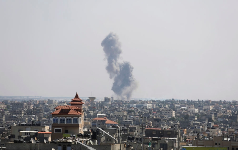 ↑這是10月7日在加沙地帶南部城市拉法拍攝的以色列軍隊(duì)空襲造成的濃煙。新華社發(fā)(哈立德·奧馬爾攝)