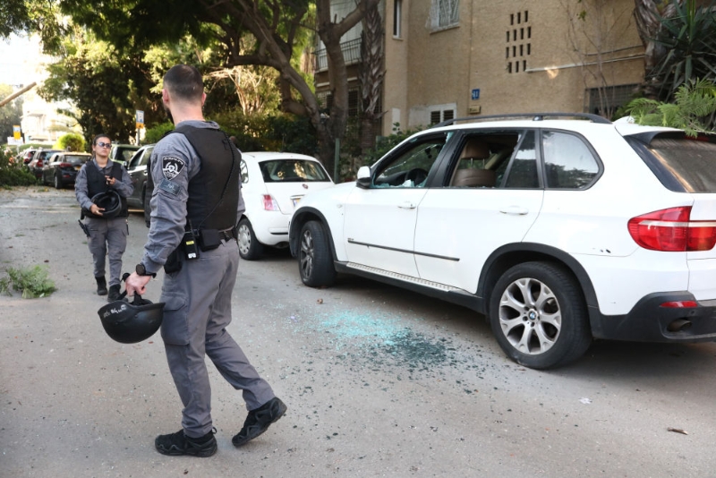 ↑這是10月7日在以色列特拉維夫拍攝的一棟遭火箭彈襲擊的建筑。新華社發(fā)(吉德翁·馬科維奇攝/基尼圖片社)