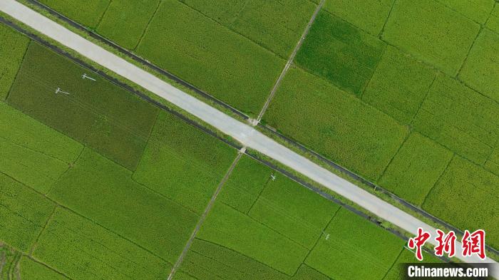 圖為筆直的道路從稻田中穿過。湯曉逵 攝