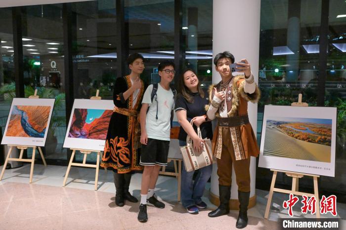 觀眾與身著民族服裝的工作人員自拍。中新網(wǎng)記者 陳永諾 攝
