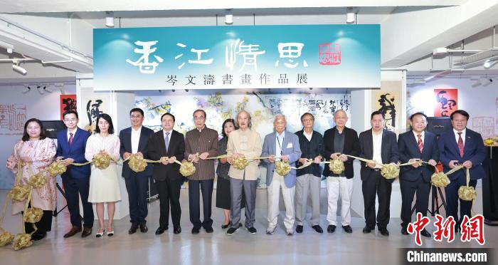 香港書畫名家岑文濤詩詞楹聯(lián)書畫作品展《香江情思》10月6日在香港開幕。圖為開幕剪彩儀式。主辦方供圖