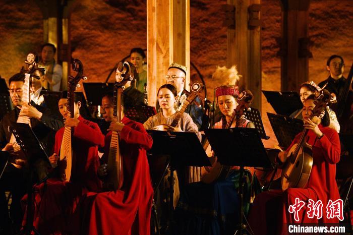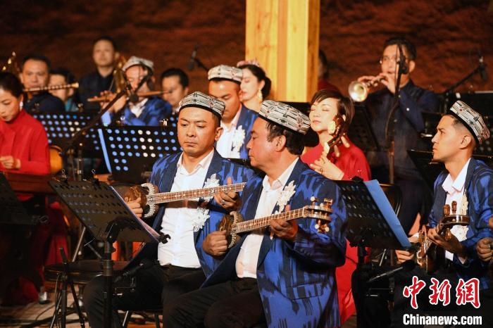 10月7日晚間,由上海民族樂(lè)團(tuán)、喀什地區(qū)歌舞劇團(tuán)聯(lián)袂演繹的《國(guó)樂(lè)詠中華》在新疆喀什市高臺(tái)民居舉辦,兩團(tuán)演奏了《絲綢之路》《天山意象》《花兒為什么這樣紅》《醉山水》《昆侖之春》《新疆是個(gè)好地方》等10個(gè)曲目,為當(dāng)?shù)孛癖姾捅姸嘤慰蛶?lái)了一場(chǎng)民族音樂(lè)盛宴。該演出還將于8日晚間再次上演。中新網(wǎng)記者 孫亭文 攝