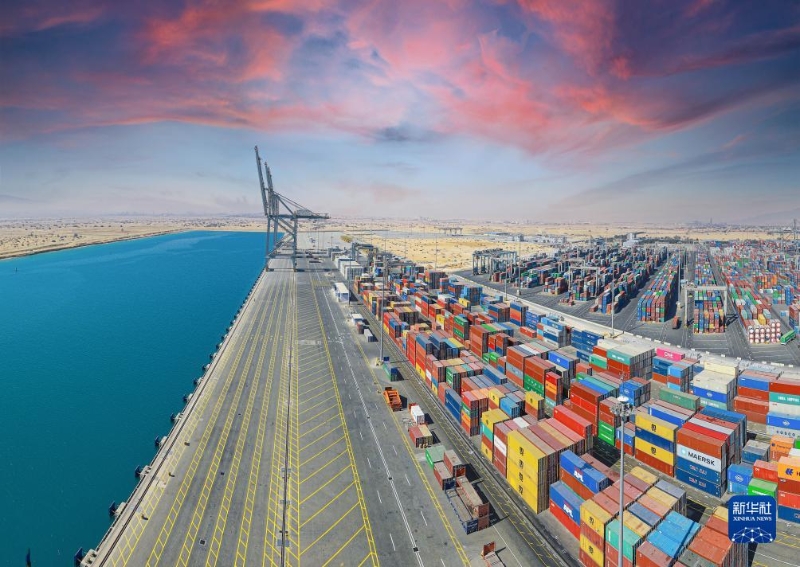 這是2023年7月1日在埃及亞歷山大省拍攝的阿布基爾港集裝箱碼頭項(xiàng)目建設(shè)現(xiàn)場(chǎng)(航拍照片)。