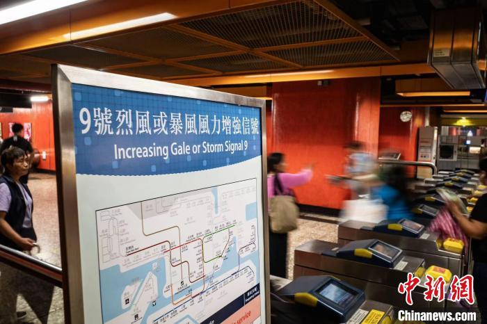 圖為當晚7時,香港天文臺升級發(fā)布“九號風球”,港鐵北角站擺放告示及相應(yīng)的最新列車運行信息?!≈行戮W(wǎng)記者 侯宇 攝