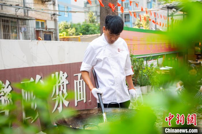 圖為9月8日,琚興波的面館內(nèi),一位員工正在“煸臊子”。(資料圖)張倩龍 攝