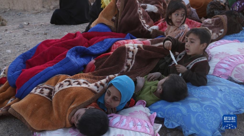 10月7日,在阿富汗赫拉特省,受災(zāi)民眾躺在地上休息。新華社發(fā)(馬沙勒攝)