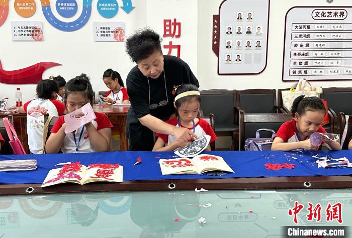 董麗霞教學(xué)生剪紙。李明芮 攝