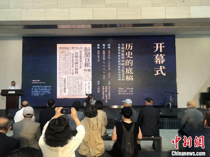中新網(wǎng)貴陽(yáng)10月9日電 (記者 張偉)“歷史的底稿——全球珍報(bào)暨印刷文化藝術(shù)展”開幕儀式8日下午在貴州美術(shù)館舉行。展覽將延續(xù)至11月5日,免費(fèi)向公眾開放。