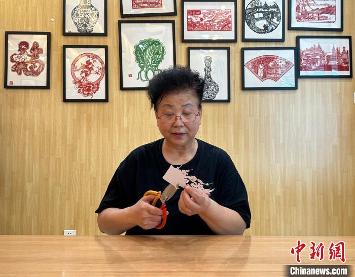 中新網(wǎng)山東膠州10月9日電 題:山東膠州剪紙藝人“紙上生花” 方寸之間展現(xiàn)指尖藝術(shù)