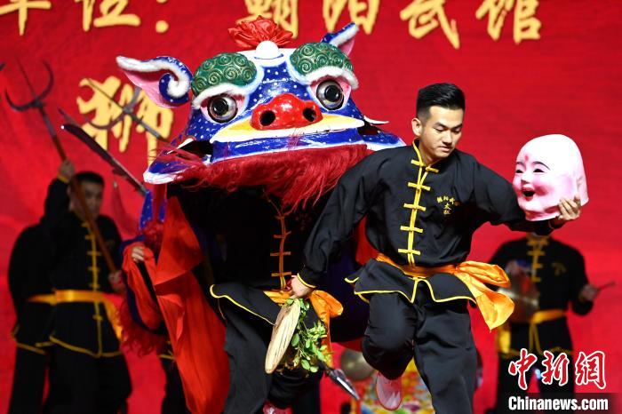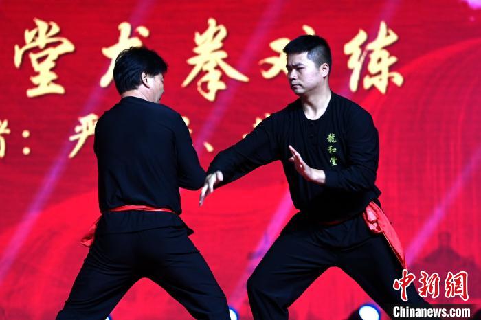 圖為龍文區(qū)龍和堂《龍拳對練》表演。中新網(wǎng)記者 張金川 攝