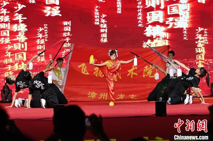 圖為龍文區(qū)飛揚武術(shù)院團(tuán)體武術(shù)表演。中新網(wǎng)記者 張金川 攝