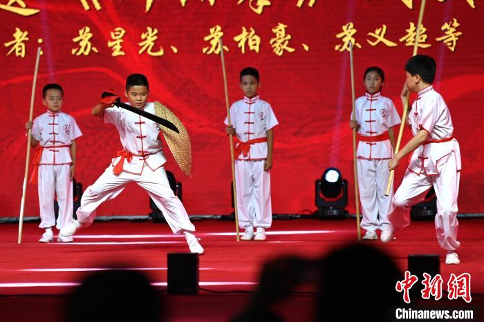 圖為龍文區(qū)田豐武館《威武何陽》表演。中新網(wǎng)記者 張金川 攝