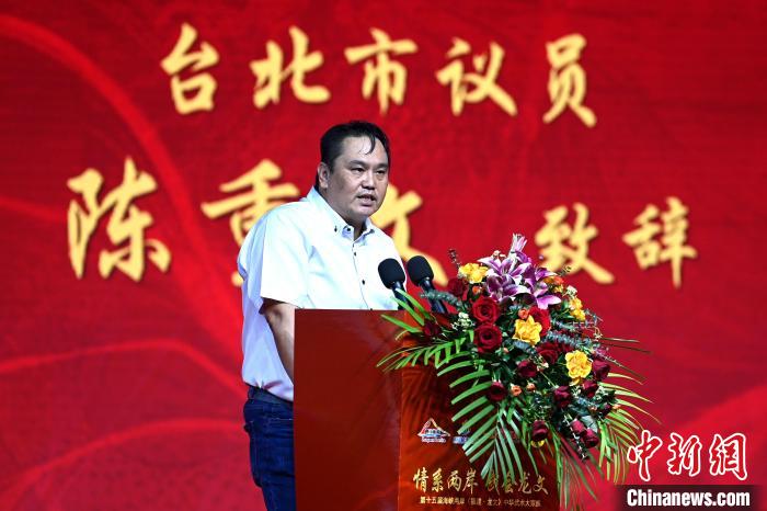 10月8日晚,第十五屆海峽兩岸(福建·龍文)中華武術大家練活動在福建漳州市龍文區(qū)舉行。圖為活動現(xiàn)場陳重文致辭。中新網(wǎng)記者張金川攝