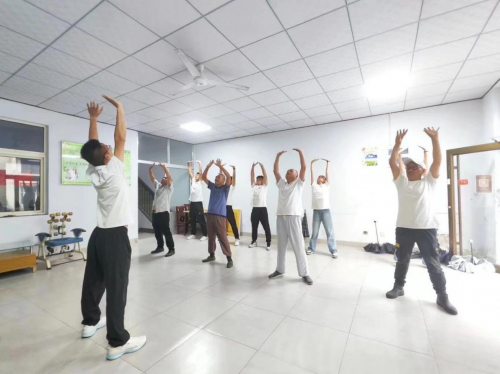 八段錦健身教學(xué)的活動(dòng)現(xiàn)場(chǎng),志愿者們一邊向旭升村活動(dòng)中心的老人們講解八段錦口訣,一邊示范八段錦的基本動(dòng)作要領(lǐng),并耐心細(xì)致地將八段錦的每一個(gè)動(dòng)作步法、手型及運(yùn)氣逐一進(jìn)行分解教學(xué),每做完一式后,志愿者們都會(huì)收集村民的反饋意見,交給村民們?cè)诰毩?xí)過程中的不足之處,因?yàn)椴糠执迕衲挲g較大,志愿者告訴村民們要依據(jù)自己的身體情況量力而行,根據(jù)自己的身體狀況聯(lián)系動(dòng)作。村民們表現(xiàn)出極大的熱情。在志愿服務(wù)隊(duì)的示范下,陸續(xù)有村民前來加入,與志愿者們一起練習(xí)八段錦。學(xué)習(xí)過程中志愿者們及時(shí)與老人交流,觀察所學(xué)動(dòng)作是否規(guī)范,糾正動(dòng)作細(xì)節(jié)。練習(xí)結(jié)束后,村民們紛紛表示八段錦姿勢(shì)簡(jiǎn)單、容易上手,每招都是“一味良藥”,做完八段錦整個(gè)人輕快不少,希望有更多機(jī)會(huì)學(xué)習(xí)。