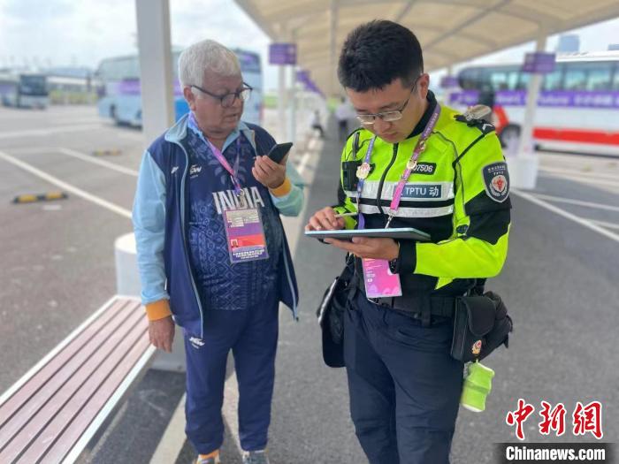 杭州交警為涉亞人員提供幫助。杭州交警供圖