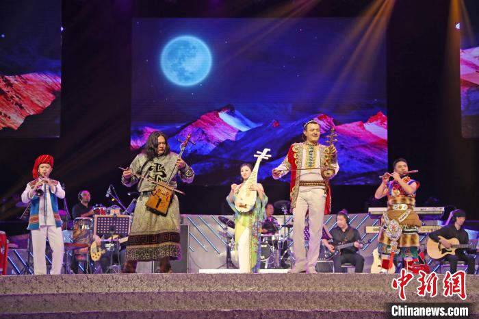 《弦歌逐夢——西部絲路之旅音樂會》上,五色風(fēng)樂團(tuán)在進(jìn)行表演,朝克吉勒圖(左二)演奏馬頭琴。中央民族歌舞團(tuán)供圖